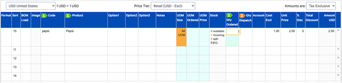 It is possible for the stock column in a sales order to show the stock of the current branch as opposed to the total stock of the product. If you’d like this switched on, please contact support.
