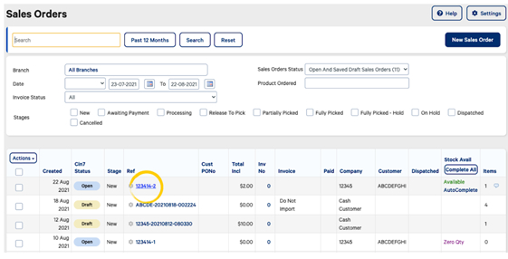 Open the sales order you want to dispatch, selecting its Reference ID.