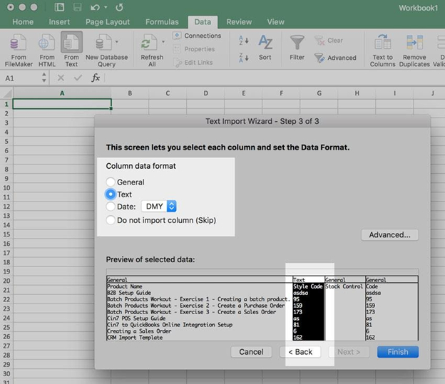 If using a .csv file, if you open the file directly from Excel, you may find that the leading zeros have been stripped from your numbers before you’ve had a chance to format the columns.