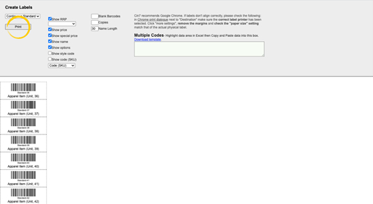 Print labels for a product