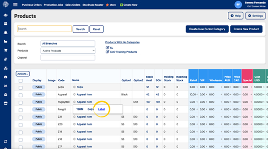 Labels can be printed for each of your products.