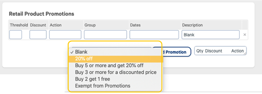 Under Retail Product Promotions, click on the dropdown to choose an existing discount option, or choose Blank to create your own.