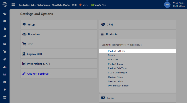 Click on Products and then Product Settings.