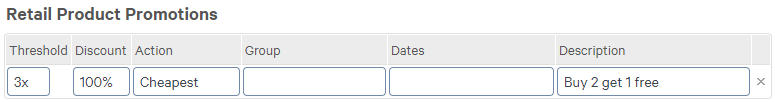 For example, 01 JUN 2022|30 JUN 2022Add a unique Description (not used by other product promotions). POS promotions can use the same description (and promotion information) for many products. This will apply the same promotion to a range of products.
