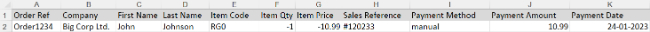 Enter the Order Ref, Payment Method, Payment Amount, and Payment Date for each credit note. These fields are required to create a credit note.