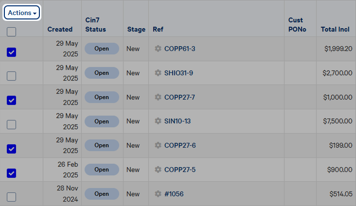 Select the orders in the list that you'd like to update.