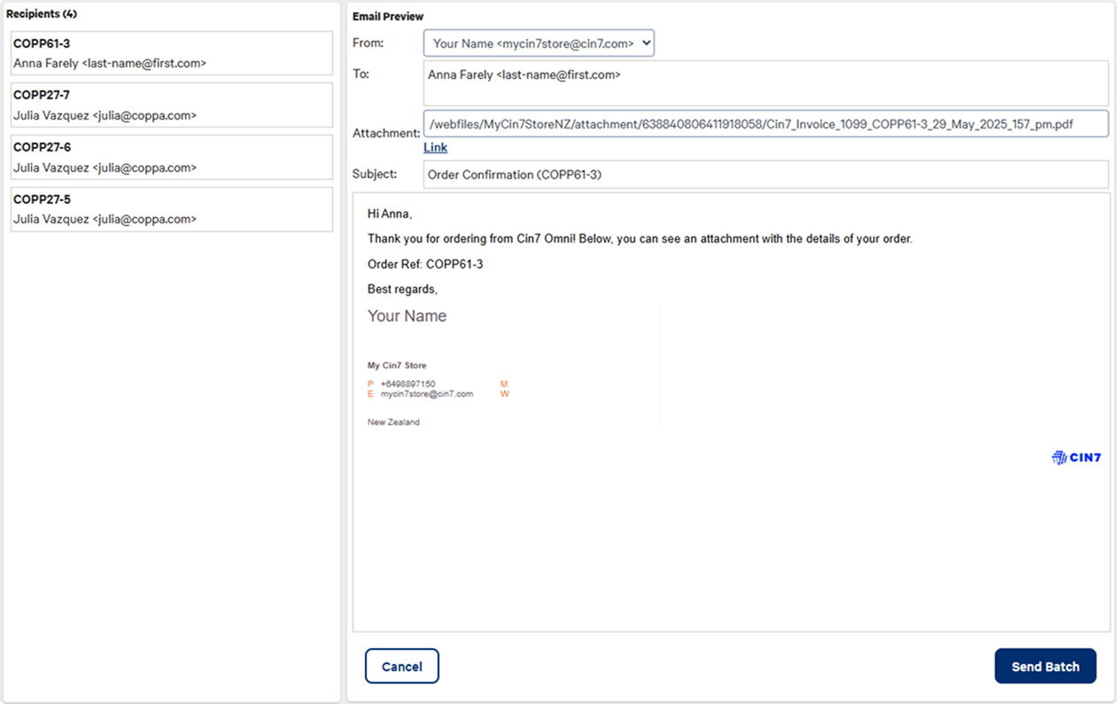 Select Send Batch to send emails to all customers.