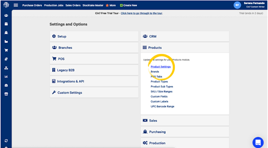 Select Product and you will find Product Settings.