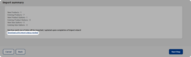 Click Download with import status marked to review the import. This helps avoid duplicating products or importing errors.