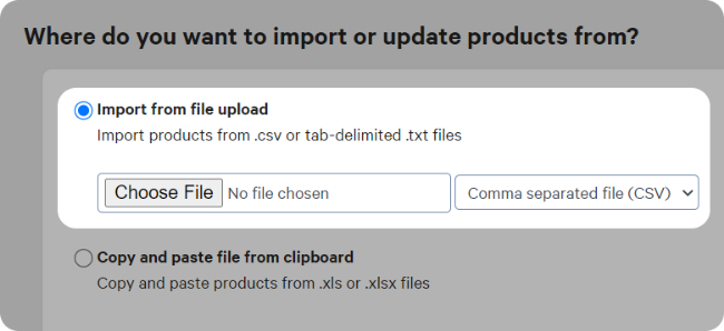 You can then import your products by selecting either:
