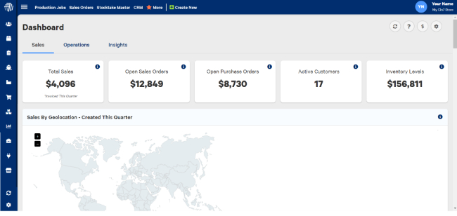 The homepage dashboard gives a summary view for the Sales, Operation, or Insights (inventory success quadrant) of your business. For a more in-depth review of your sales and operations, use Insight reports.
