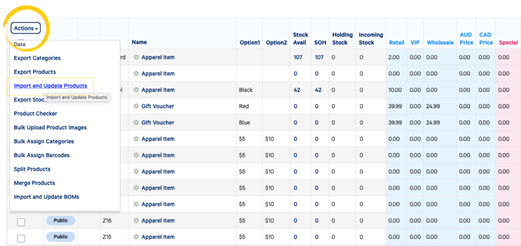 You can import new products into Cin7 Omni from a spreadsheet by: