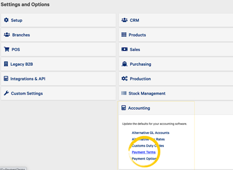 Under the Accounting menu, select Payment Terms.