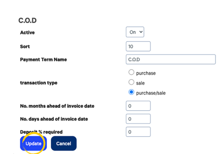 Active | Controls which payment terms are available in the list. |