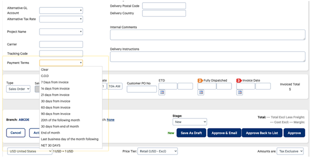 Select a payment term from the Payment Terms drop-down.
