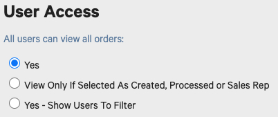 View Only If Selected As Created, Processed or Sales Rep - Users can only view the order if they created it, Processed it, or are assigned as the Sales Rep.
