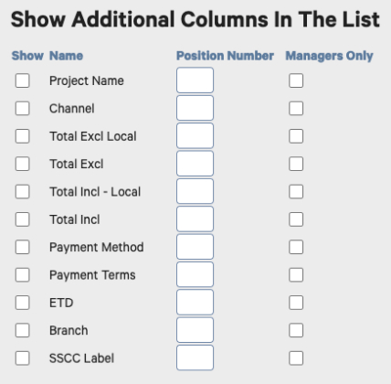 Select any of the additional fields shown to add additional search boxes to the Quote List Page.