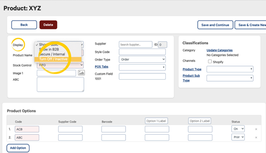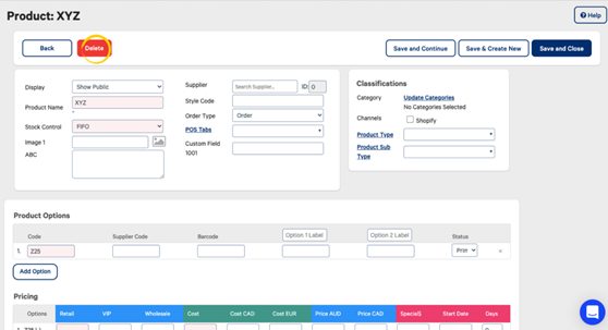 If the Product you are wanting to delete has one or more transaction records, in order to preserve data integrity, it is not possible to be deleted. However, it is possible to switch the Display status of the Product to inactive.