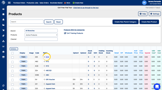 Find the product that you wish to make inactive and select the product Name to edit the details.