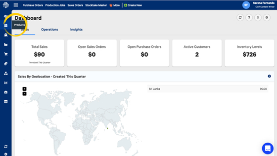 From the left navigation, select Products.
