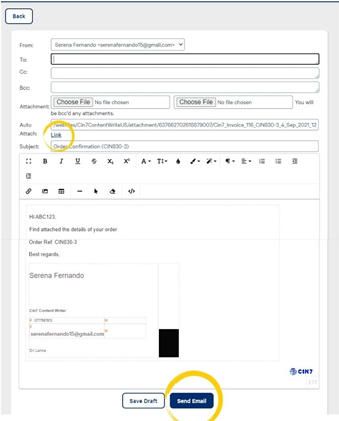 The email will be sent from Cin7 Omni's servers but from your email address, shown in the top left.