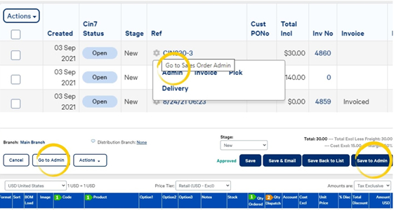 First go into Sales Orders. Once in Sales Orders. There are three ways to get open the Admin page