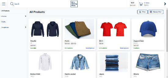 Each product can have images, a description, price, and sizes. Customers can also see the stock available (or incoming).