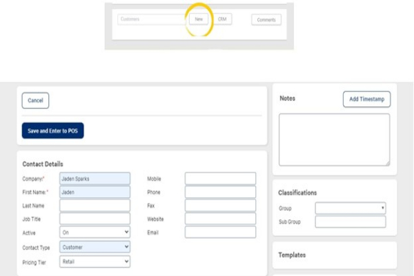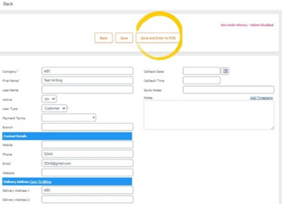First Name or Company are the only required fields.Select Save and Enter to POS.