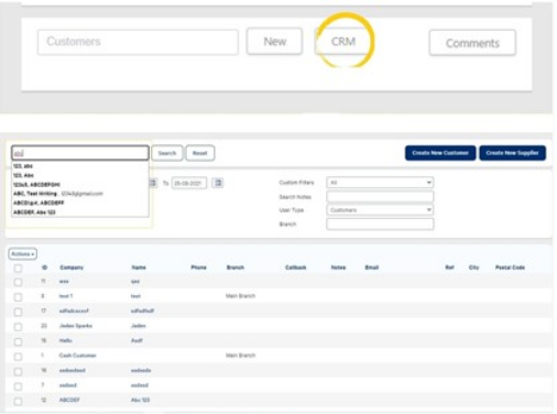 Just as above, select CRM, and then in the new tab that opens, search for the customer from the Keyword box.