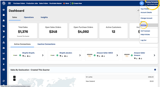 While logged in as an Administrator, select your username in the top right corner and then select Settings.