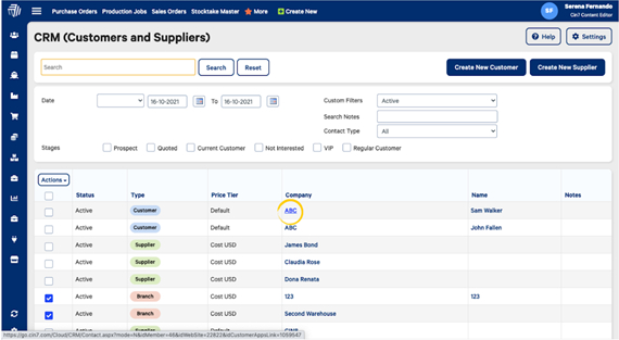 For example, you may wish to add a number of customers to the "Prospect" stage, and then filter the CRM list to see all of those customers in order to phone them one by one.