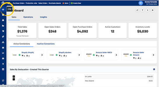 From the left navigation, select the CRM module.