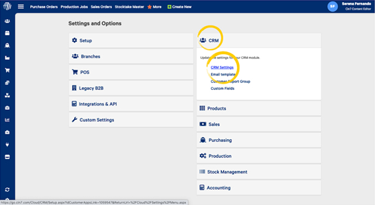 Under the CRM menu, select CRM Settings.