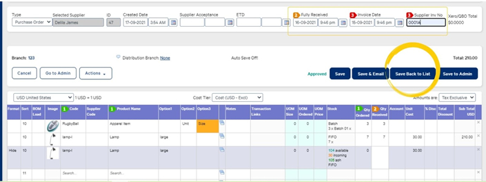 Note that the Back Ordered items have now been removed from this order.Enter a Fully Received Date, Invoice Date, and Supplier Invoice Number