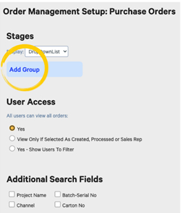 Select additional fields you would like included in the Bulk Update Feature. This function is explained in the article Updating Purchase Orders in Bulk.