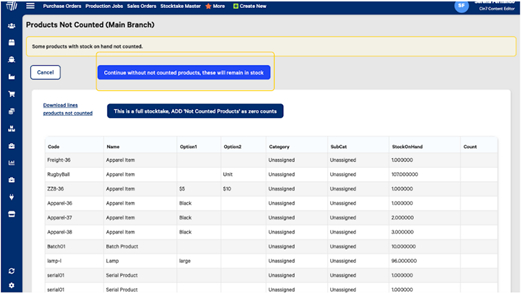 Continue counting all items until there are no more products in the ‘Not Counted’ tab.
