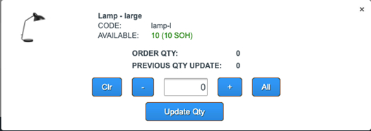 Select a product by clicking/pressing on it, then entering the counts.