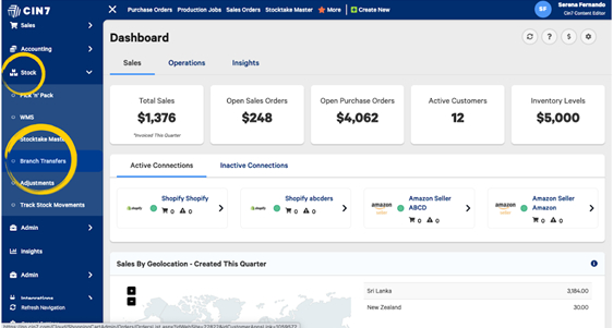 From the left navigation panel click Stock, then select Branch Transfers.