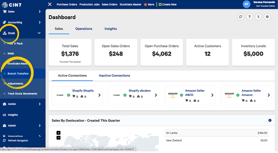 From the left navigation panel click Stock, then select Branch Transfers.