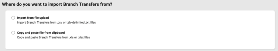 Branch Transfers can be imported into the system in bulk, using our easy-to-use import wizard.