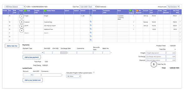 Here is an example of a typical New Zealand import costs purchase order: