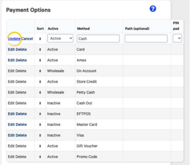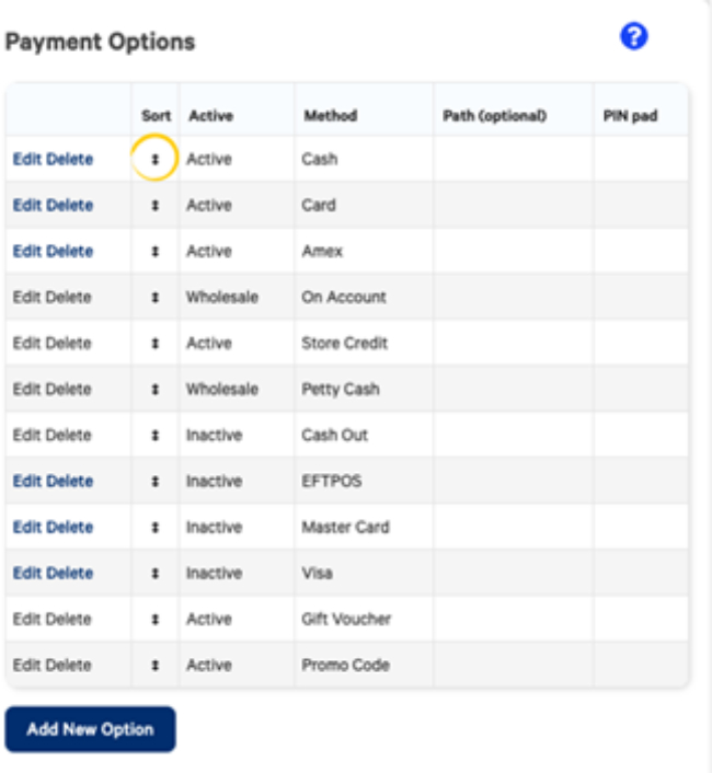 Payment methods will appear in the POS in the order of payments in this list. To change the order of payment methods:
