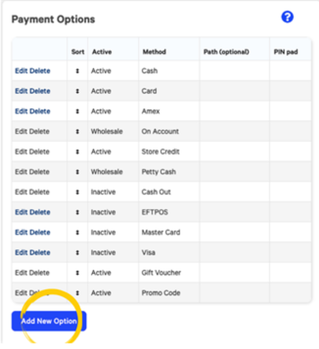 In the Payments Option section, select Add New Option.