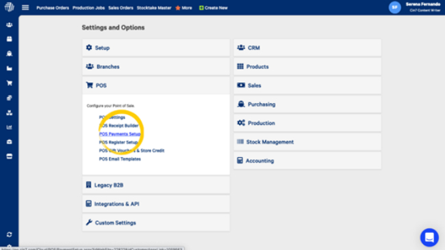 Under the POS menu, select POS Payments Setup.