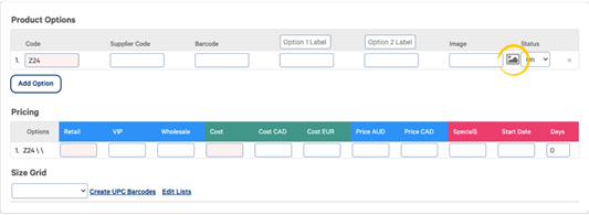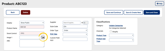 Product Images are stored against the main product details. They are most useful for products with only one price option.