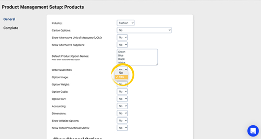At the top of the screen, switch on the Option Image option by selecting Yes from the drop down. Select Save from the bottom of the page to confirm the change.