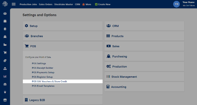 From the POS menu, select POS Gift Vouchers & Store Credit.