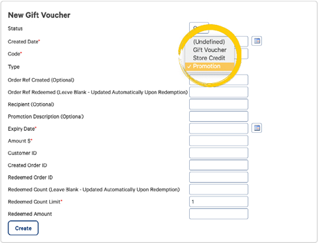 You'll only need to fill out some of the fields in the form that appears.In the Code field, enter a promo code of your choice (e.g., SPRINGSALE).