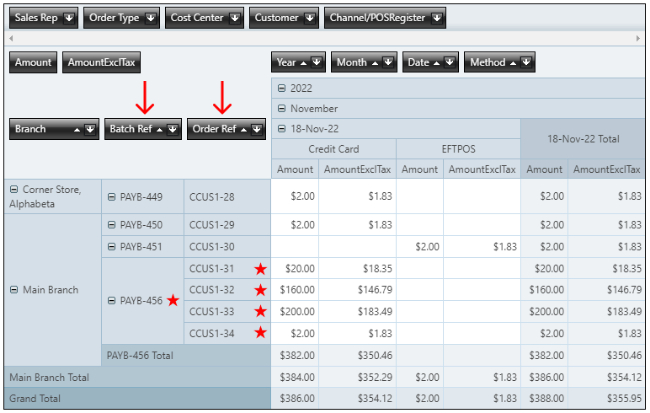 Add Batch Ref then Order Ref as rows to the report, as in the image below.