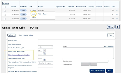 Select the Actions, then select Merge Separate Size Lines Into One.